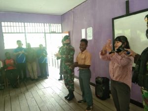 Keerom – Dalam rangka meningkatkan taraf kesehatan dan perkembangan balita-balita yang ada di perbatasan, Pos Tatakra Satgas Pamtas Yonif 312/Kala...