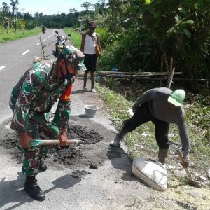 Sarmi - Bertempat di Kampung Niwerawar Kompleks Babinsa Koramil 1712-07/Pantai Barat Sertu Sahrul bersama masyarakat kampung melaksanakan kegiatan Karya Bahkti...