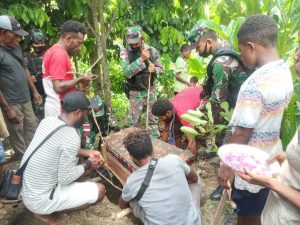 Keerom - Dalam rangka menjalin tali silahturahmi dan turut berduka atas meninggalnya salah satu anak dari warga Kp. Sach, Personil...