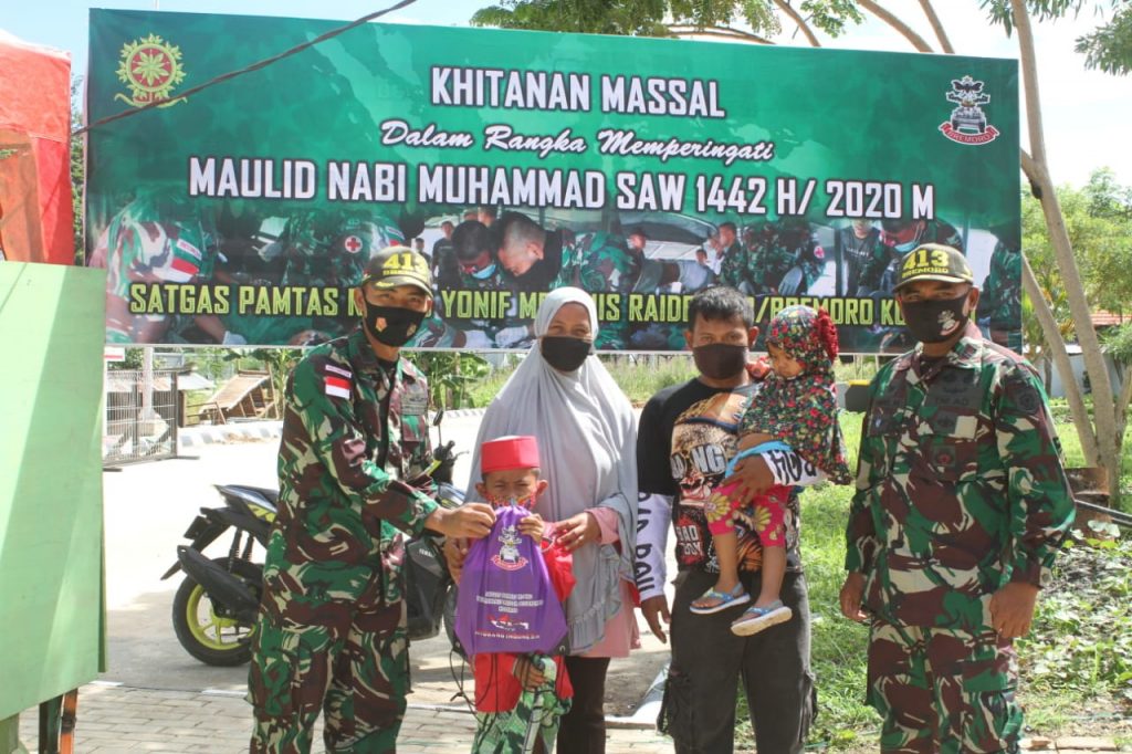 Dalam rangka memperingati Hari Lahir Nabi Muhammad SAW Tahun 1442 H atau biasa disebut sebagai Maulid Nabi, Satgas Pamtas RI-PNG Yonif Mekanis Raider 413 Kostrad menggelar Khitanan Massal bertempat di halaman Masjid Al-Hijrah Kampung Skouw Distrik Muara Tami Kota Jayapura.