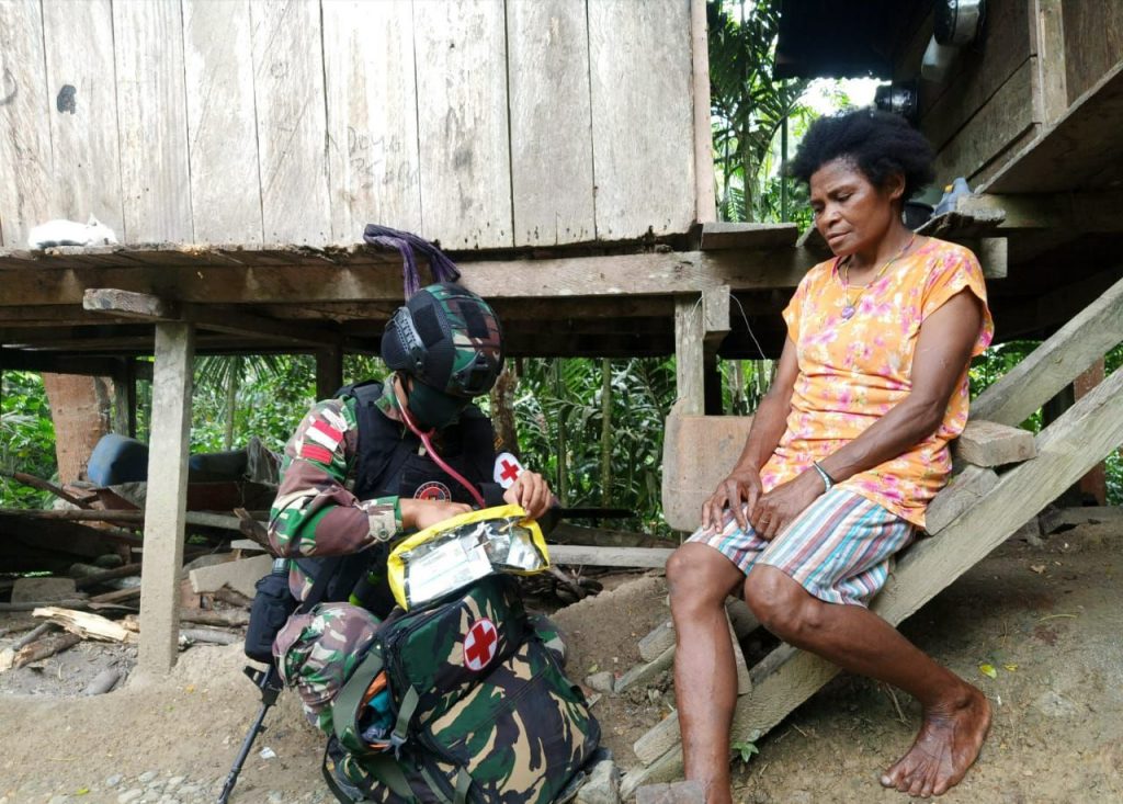 Keerom – Kegiatan pelayanan kesehatan ini merupakan bentuk kepedulian Satgas Perbatasan Yonif Raider 100/PS Pos Karang dalam berikan pelayanan kesehatan kepada masyarakat Kampung Yuwainda yang membutuhkan pengobatan dimana mereka masih kesulitan untuk mendapatkan pelayanan dan fasilitas kesehatan di Distrik Waris, Kabupaten Keerom, Provinsi Papua. Sabtu, (07/11/2020).