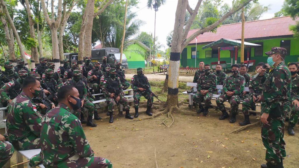 Keerom – Satgas Pamtas RI-PNG Sektor Utara Yonif Raider 100/PS menerima kunjungan kerja dari Tim Wasev Sopsad di Makotis Satgas Yonif Raider 100/PS, Kampung Wonorejo, Distrik Mannem, Kabupaten Keerom, Provinsi Papua. Rabu,(11/11/2020).