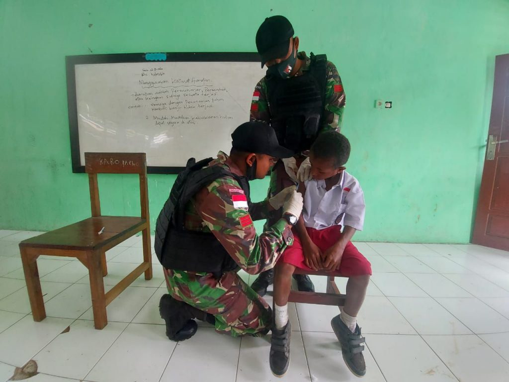 Keerom-Satgas Yonif Raider 100/PS pada kesempatan kali ini Pos Waris kembali memberikan penyuluhan kesehatan kepada anak anak SD Kanandega yang ada di perbatasan RI-PNG bekerjasama dengan Puskesmas Waris, kali ini melakukan kegiatan imunisasi dalam rangka memberikan kekebalan tubuh terhadap penyakit, yang dilaksanakan di SD Kanandega, Kampung Banda.