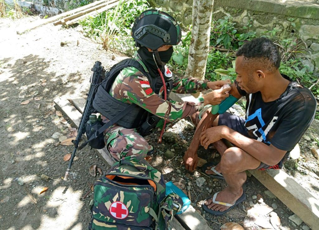 Keroom – Aksi pelayanan kesehatan keliling dilaksanakan dengan menyambangi rumah masyarakat, sekaligus menjalin silahturami membina hubungan emosional yang baik, Satgas Pamtas RI-PNG Yonif Raider 100/PS Pos Karang melaksanakan kegiatan pelayanan kesehatan kepada masyarakat di Kampung Yuwainda, Distrik Waris, Kabupaten Keroom, Provinsi Papua. Rabu, (28/10/20).