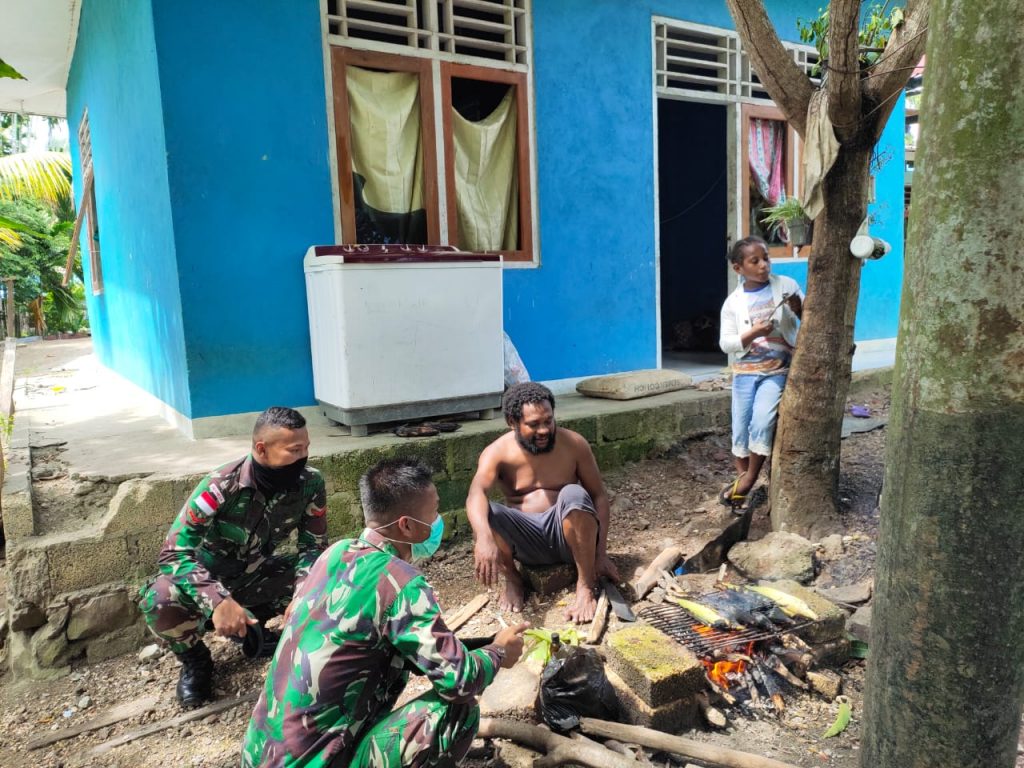 Satgas Pamtas RI-PNG Yonif Mekanis Raider 413 Kostrad Pos Nafri melaksanakan anjangsana keliling di Kampung Nafri Distrik Abepura Kota Jayapura dalam upaya menguatkan ikatan silaturahmi antara Satgas dengan masyarakat.