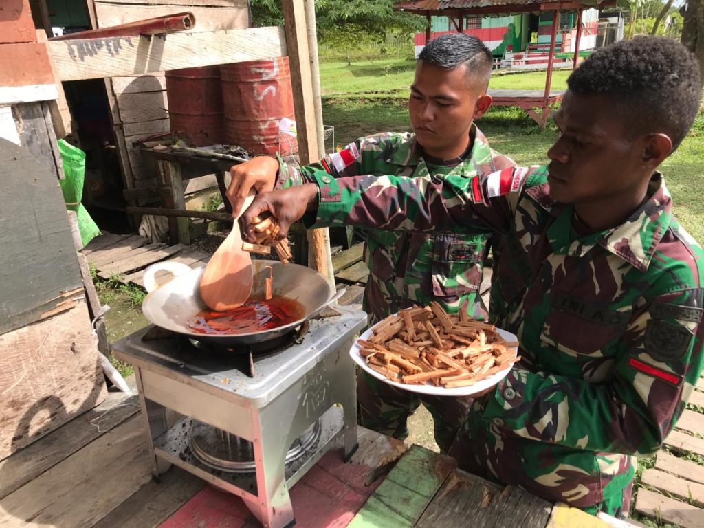Keerom – Memanfaatkan kekayaan alam yang ada di tanah Papua, Pos Kotis Satgas Pamtas Yonif 312/Kala Hitam menemukan dan mengolah salah satu tanaman herbal berkhasiat “Bajakah” di Kampung Senggi, Distrik Senggi, Kabupaten Keerom, Papua.