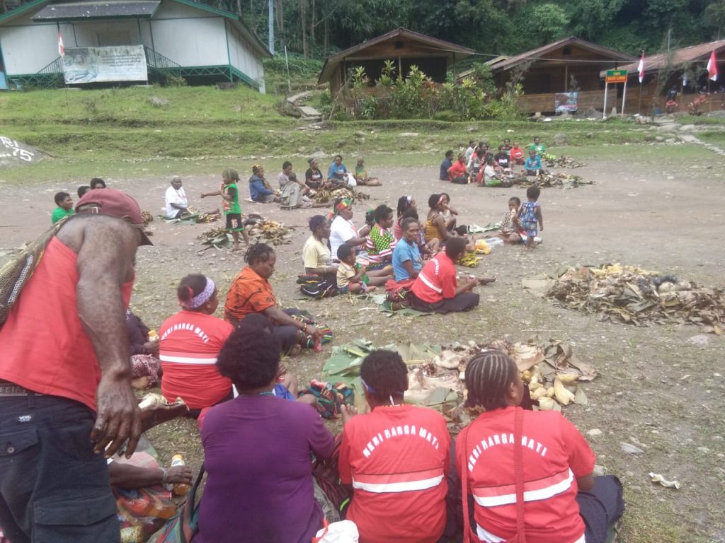 “Disamping sebagai aparat keamanan yang bertugas memberikan dan menjamin rasa aman pada masyarakat, kami juga turut serta terlibat secara langsung bergotong royong bersama masyarakat mulai dari menyiapkan tempat di lapangan helypad Tsinga, mengambil bahan-bahan yang akan digunakan untuk acara bakar batu berupa pengambilan batu di sungai, kayu serta daun-daun di hutan sampai pada pelaksanaan kegiatan hingga selesainya”, terangnya.