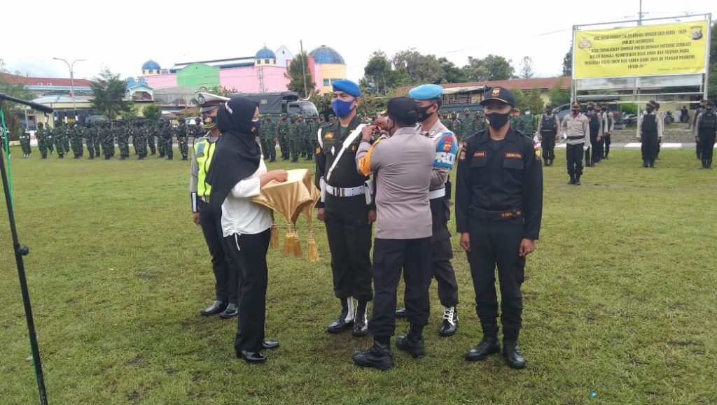 Diawali Penghormatan, Laporan dan Pemeriksaan Pasukan. Dilanjutkan penyematan Tanda Peserta Ops Lilin Matoa tahun 2020.