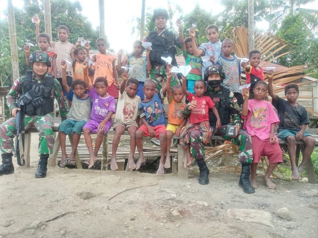 Sementara itu, Kepala Kampung Laurens Ibe (50) mengucapkan terima kasih atas kepedulian Satgas terhadap anak-anak di kampungnya. “Terima kasih kami ucapakan kepada Bapak TNI. Semoga Tuhan selalu berikan Kesehatan, keselamatan dan keberhasilan dalam menjaga kedamaian dan keamanan di tanah Papua,”tuturnya.
