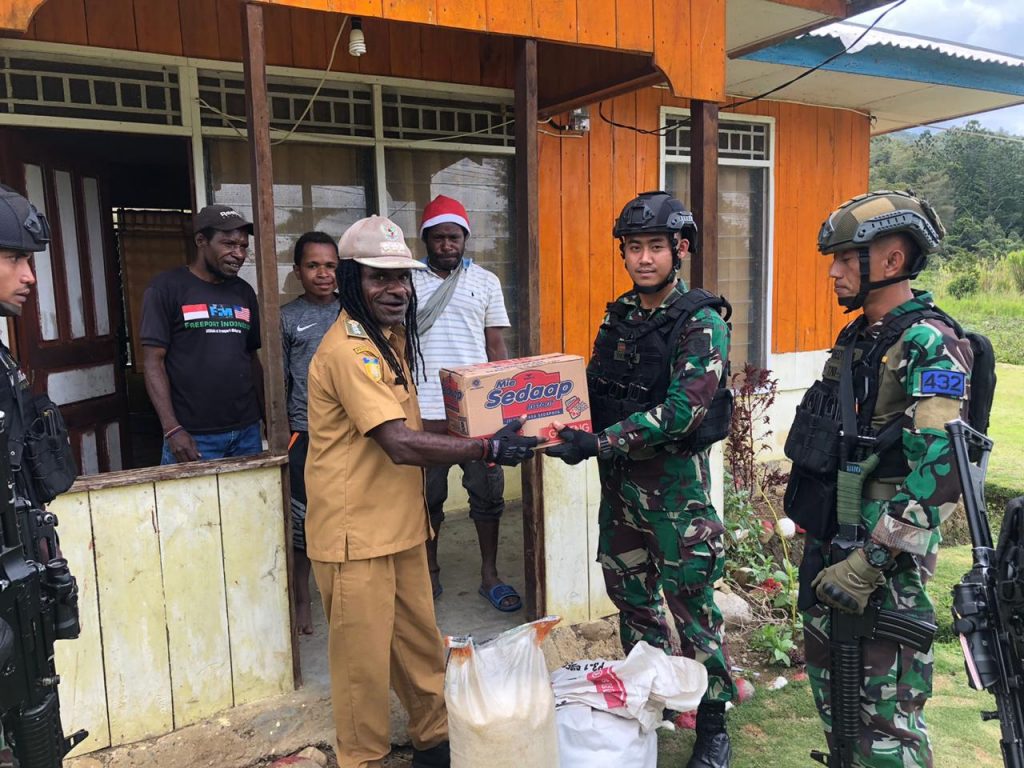 Menjelang Natal, Satgas Yonif Para Raider 432 /WSJ Kostrad Pos Kimbim berbagi sembako kepada masyarakat kampung kimbim . Distrik asologaima, Kab. Jayawijaya, Prov. Papua. (25/12/2020).