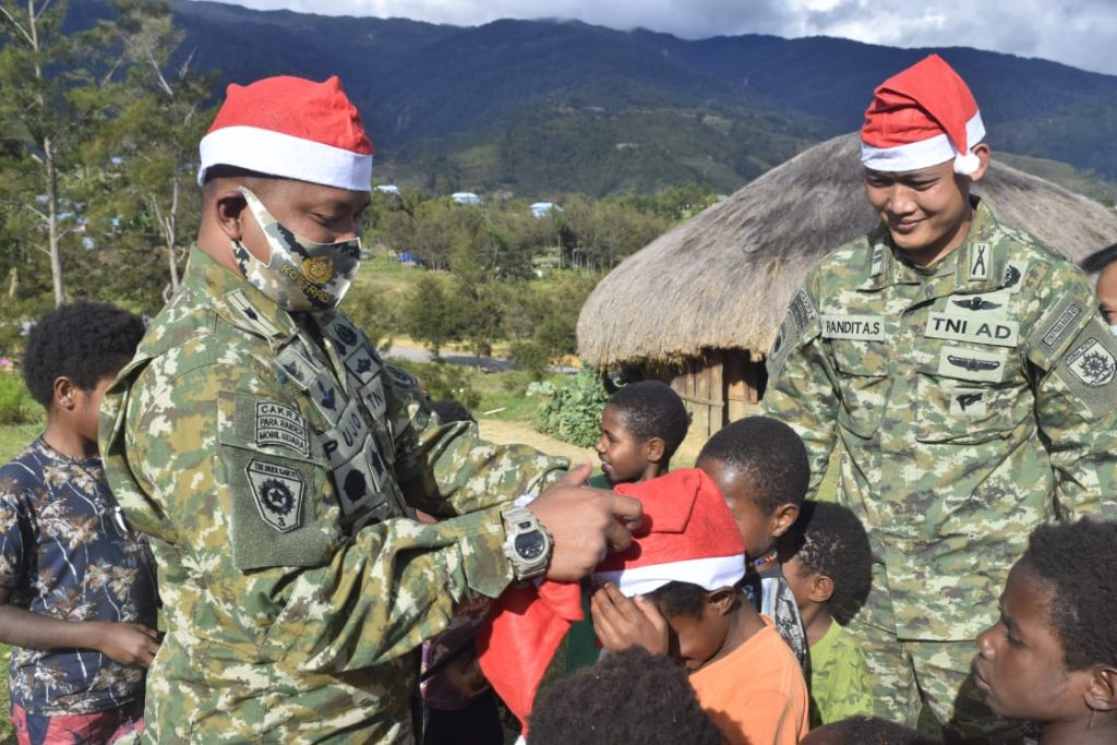 Dalam menyambut datangnya Hari Raya Natal, Pos Kotis yang di pimpin Langsung oleh Dansatgas Mayor Inf Agus Priyo Pujo Sumedi. S.I.P, M.Han. bersama Anggota Pos Kotis memberikan Hadiah Natal kepada anak – anak Jemaat Gereja GKI Tiom. (25/12/2020)