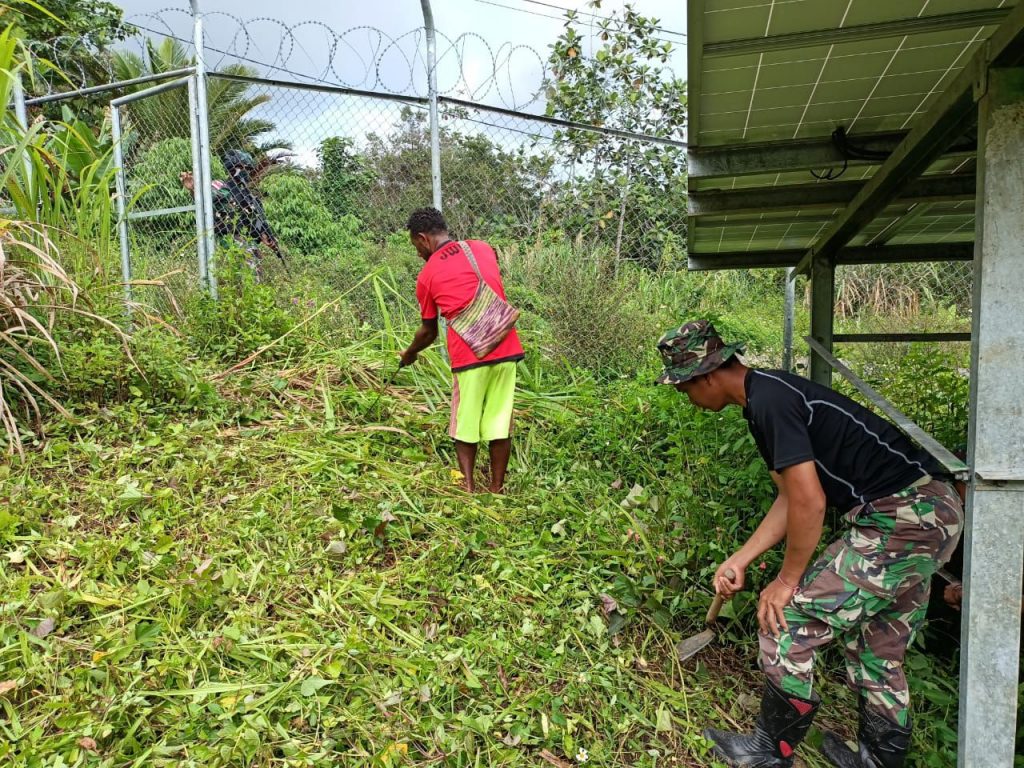 Keerom – Karya bhakti merupakan salah satu usaha untuk terus menjalin kebersamaan dan kerja sama dengan warga yang ada di wilayah perbatasan dan apa yang dilakukan adalah untuk meringankan beban warga masyarakat, Selain tugasnya menjaga daerah perbatasan Satgas Pamtas RI-PNG Yonif Raider 100/PS Pos Waris juga turut membantu bersihkan Tower Telkomsel Bakti di Kampung Paitenda, Diatrik Waris, Kabupaten Keerom, Provinsi Papua. Sabtu,(19/12/2020).