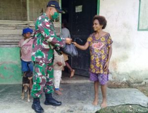 Jayapura - Koramil 1701-02/Jayapura Utara Kodim 1701/Jayapura laksanakan komunikasi sosial dan pemberian Sembako, oleh Danramil 1701-02/Jayapura Utara Kapten Inf Guntur...