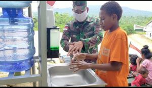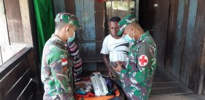Personel Satgas Pos Kaliasin Yonif 713/Satya Tama pimpinan Letda Inf Ida Bagus kembali cek and cek kesehatan masyarakat dengan berkeliling...