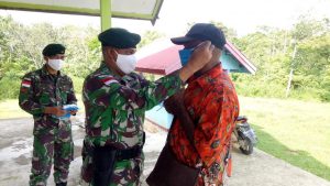 Satgas Pamtas Yonif Raider 300/Bjw, Pos Yabanda yang dipimpin Letda Inf Asep Nana melaksanakan kegiatan pengamanan Ibadah dan membagikan Masker...