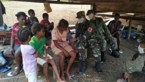 Satgas Pamtas Yonif Raider 300/Bjw, Pos Km 76 dipimpin Serda Ali Imran melaksanakan kegiatan anjangsana dan memberikan pelayanan kesehatan kepada...
