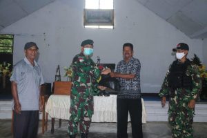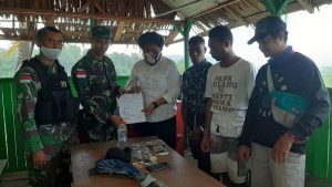 Dansatgas Yonif 713/ST Letkol Inf Dony Gredinand,S.H.,M.Tr.Han.,M.I.Pol bersama Letda Inf Suleman (Pasiter Satgas Yonif 713/ST), Lettu Inf KP Simajuntak (Danki...