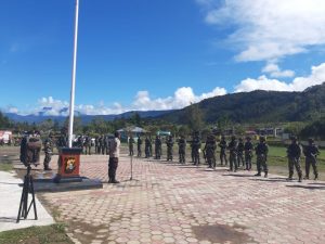 Abepura - Anggota Satgas Pamtas RI-PNG Yonif Raider 509 Kostrad Pos Oksibil yang dipimpin oleh Danpos Lettu Inf Hidayat bersama...