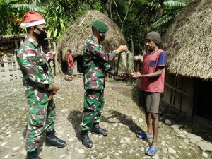 Menjelang Natal, Satgas Yonif Para Raider 432 Kostrad Pos Kurulu berbagi kasih dengan cara menyisihkan bahan pokok makanan pos yang...