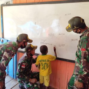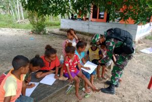 Keerom - Kegiatan yang positif dan bermanfaat berupa bimbingan belajar, personel Satgas Pamtas RI-PNG Yonif Raider 100/PS Pos Wambes, berinisiatif...