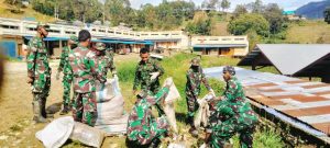 Tiom ~ Babinsa koramil 1702-04/Tiom Dpp Danramil Lettu Inf Rudi Hisage, bersama 10 anggota melaksanakan pembersihan pasar bertempat di Distrik...
