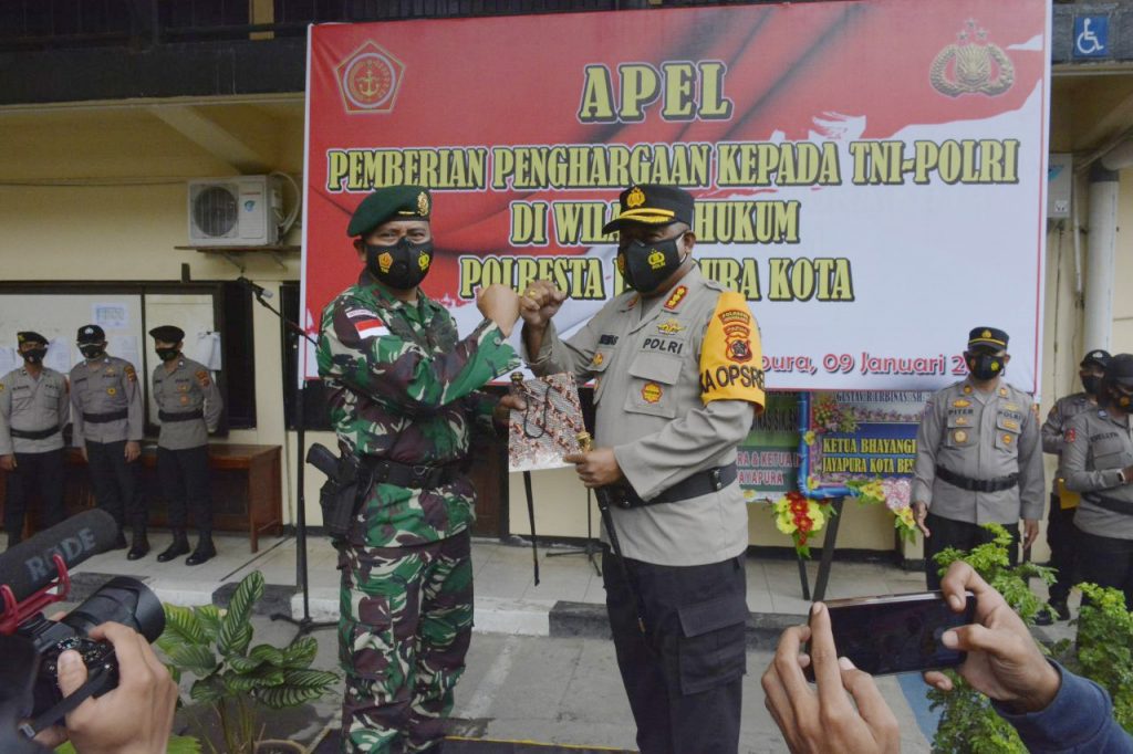 Pemberian penghargaan tersebut juga diberikan kepada 18 orang Personel Polri di wilayah Hukum Polres Jayapura Kota yang dipimpin langsung oleh Kapolresta Jayapura Kota Kombes Pol Gustav R. Urbinas, S.H, S.I.K, M.P.d.