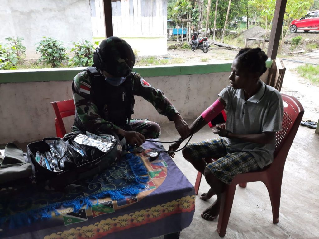Sementara itu, kegiatan pelayanan kesehatan tersebut dipimpin oleh Bintara Kesehatan (Bakes) Pos Wembi Serka Sapuan beserta 6 orang anggota lainnya. adapun penyakit yang diderita Ibu Jedi (24), yaitu sakit kepala dan sering pusing kemudian personil pos langsung memeriksa dan memberikan obat supaya penyakitnya bisa cepat sembuh.