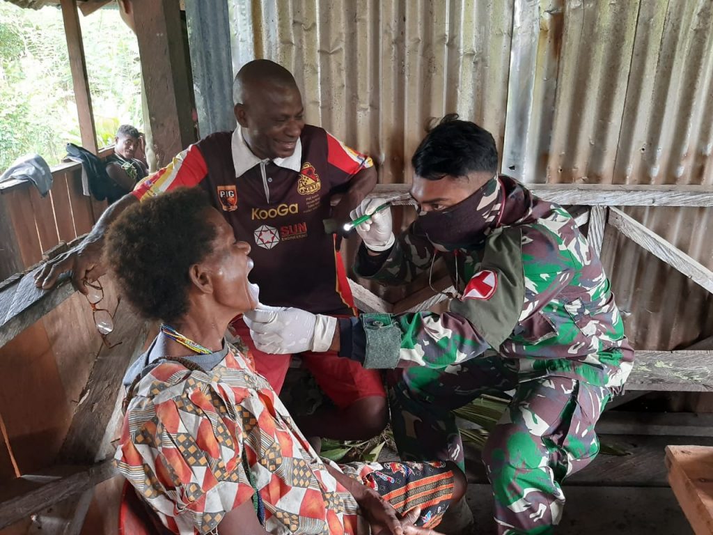 Keerom – Sebagai wujud kepedulian TNI terhadap kesehatan masyarakat khususnya di perbatasan, Pos Towe Hitam Satgas Pamtas Yonif 312/Kala mengadakan pelayanan kesehatan gratis di Kampung Kumalen, Distrik Towe, Kabupaten Keerom, Papua.