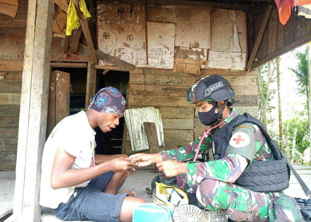 Keerom – Selain bertugas menjaga pengamanan perbatasan juga melaksanakan tugas-tugas lain diantaranya Pembinaan Teritorial (Binter) kepada masyarakat perbatasan terutama bidang kesehatan agar tercipta hubungan silaturahmi yang baik antara anggota Satgas dengan masyarakat perbatasan. Pada kesempatan ini, Pos Karang berikan pelayanan kesehatan kepada masyarakat Kampung Yuwainda, Distrik Waris, Kabupaten Keroom, Provinsi Papua. Rabu (30/12/20).