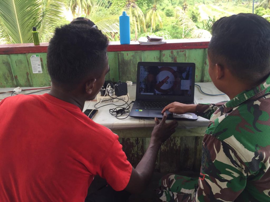 “Salah satu Pemuda bernama Atrianus (19) di Kampung Gambut mendatangi Pos Bendungan Tami dan meminta Komandan Pos untuk mengajarkannya ilmu dasar Komputer, kebetulan salah satu anggota Kami bernama Serda Anggi Piliang membawa laptop sehingga pemuda tersebut diberikan materi dasar pengenalan Komputer.” Ungkap Anggun.