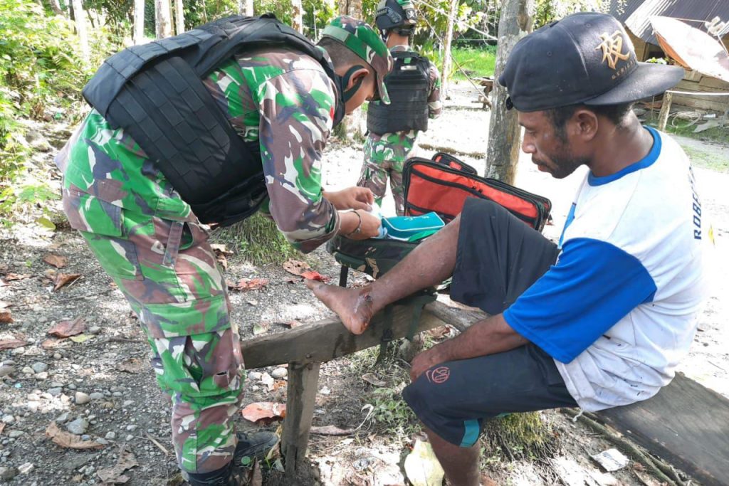 Keerom-Pos Ampas Satgas Pamtas RI-PNG Yonif Raider 100/PS gelar kegiatan pelayanan kesehatan tersebut dalam rangka menjaga hubungan dengan masyarakat dan peduli untuk membantu mengatasi kesulitan warga terkait dengan masalah kesehatan khususnya Kampung Ampas, Distrik Waris, Kabupaten Keerom, Provinsi Papua. Rabu,(09/01/2021).