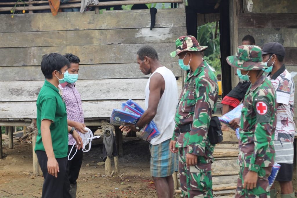 Keerom – Dalam rangka mengantisipasi penyebaran penyakit malaria di musim penghujan saat ini, Pos Towe Hitam Satgas Pamtas Yonif 312/Kala Hitam bersama Puskesmas Towe Hitam membagikan kelambu secara gratis kepada warga Kampung Towe Hitam, Distrik Towe, Kabupaten Keerom, Papua.