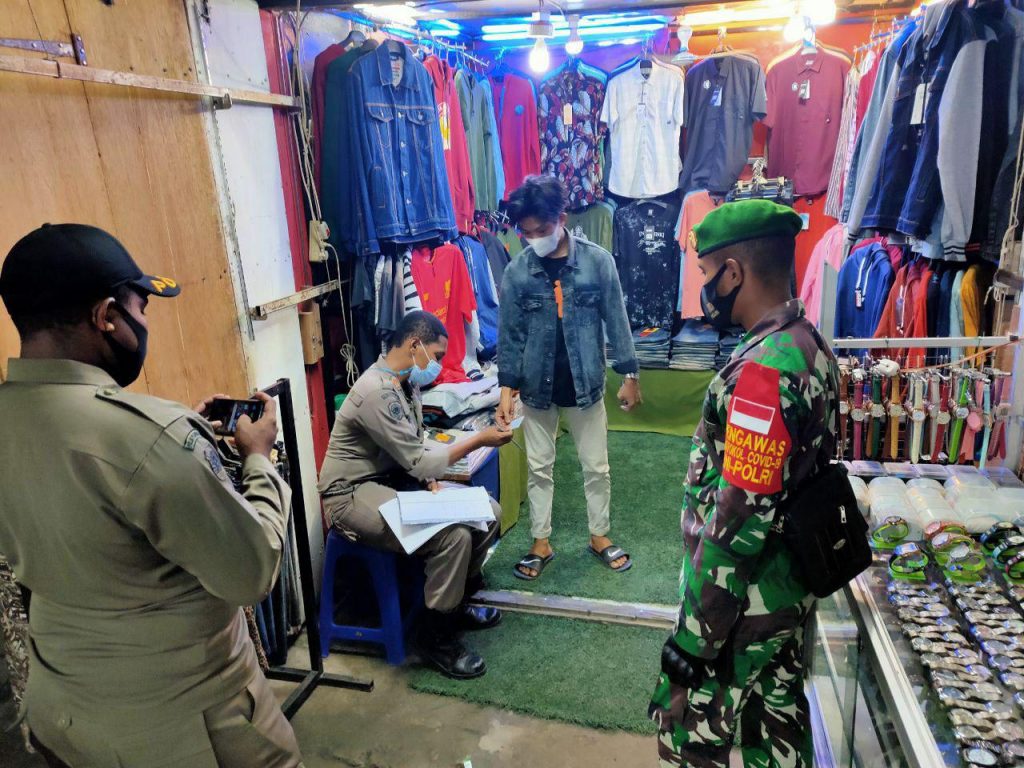 Jayapura – Kodim 1701/Jayapura yang tergabung dalam satgas pencegahan Covid Kota Jayapura terus melaksanakan Patroli pencegahan Covid dan penegakan pemberlakuan jam oprasional bagi pelaku usaha di Distrik Abepura Kota Jayapura,Kamis (25/02/2021).
