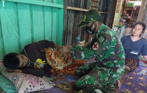 Satgas Pamtas RI-PNG Yonif Mekanis Raider 413 Kostrad Pos Pitewi memberikan perawatan kepada salah satu warga Kampung Pitewi Distrik Arso...