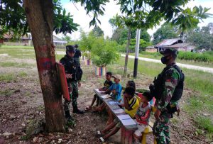 Keerom - Satgas Yonif Raider 100/PS Pos Arso 13 disela sela kegiatannya mengamankan Perbatasan RI-PNG, juga meluangkan waktu dalam memberikan...