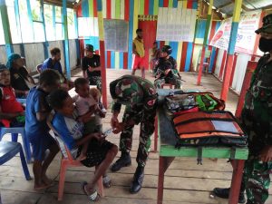 Keerom – Dalam rangka meningkatkan kualitas dan taraf kesehatan warga yang ada di perbatasan Papua, Pos Somografi Satgas Pamtas Yonif...