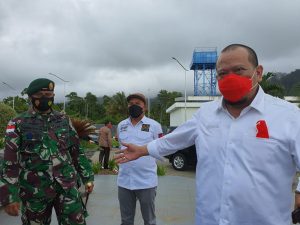 Dansatgas Pamtas RI-PNG Yonif Mekanis Raider 413 Kostrad Mayor Inf Anggun Wuriyanto S.H., M.Han mendampingi Ketua DPD RI Ir. La...