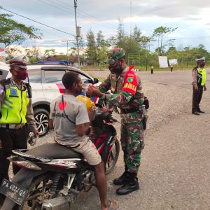 Dekai - Satgas Covid Penegakkan protokol Covid Kodim 1715/Yahukimo turun ke jalan untuk giatkan protokol kesehatan kepada masyarakat di Distrik...