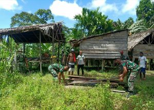 Satgas Pamtas RI-PNG Yonif Mekanis Raider 413 Kostrad Pos Yetti bersama masyarakat Kampung Yetti Distrik Arso Timur Kabupaten Keerom melaksanakan...