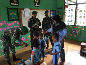 Keerom – Dalam rangka mendukung program pemerintah untuk mencerdaskan generasi penerus bangsa, prajurit Pos Komando Utama (Kout) Satgas Pamtas Yonif...