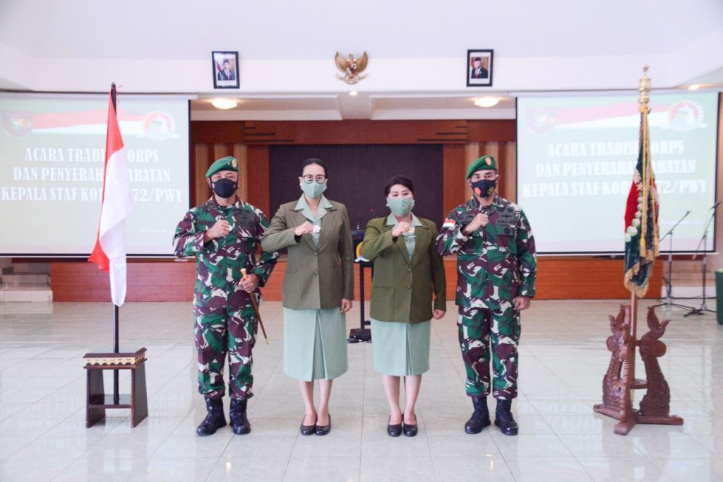 Pada kesempatan yang sama, Ketua Persit KCK Koorcab rem 172 Ny. Juliet Izak Pangemanan menyerahterimakan jabatan Wakil Ketua Persit KCK Koorcab rem 172 kepada Ny. Levina Wempi Ramandey.