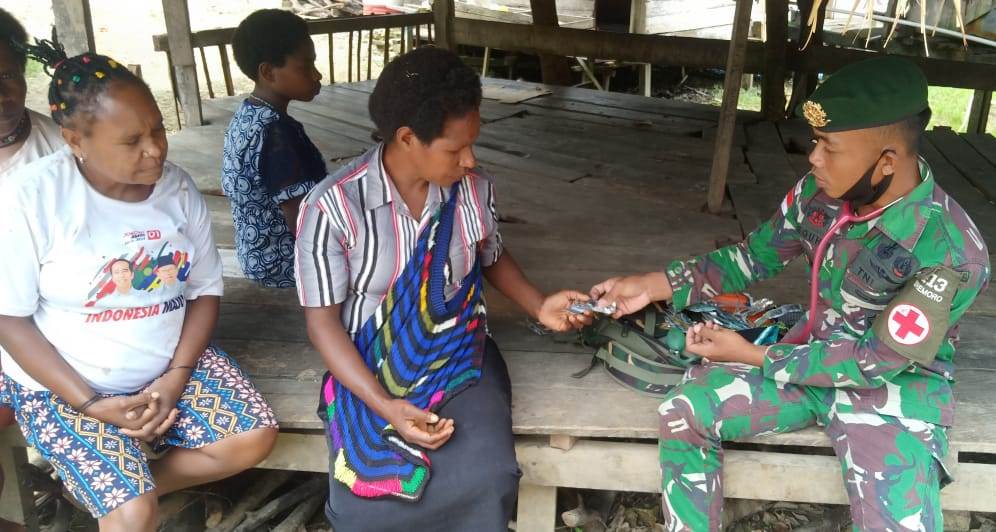TNI melalui Satgas Pamtas RI-PNG Yonif Mekanis Raider 413 Kostrad Pos Bendungan Tami melaksanakan pengecekan kesehatan masyarakat Papua secara door to door di Kampung Gambut Distrik Muara Tami Kota Jayapura.