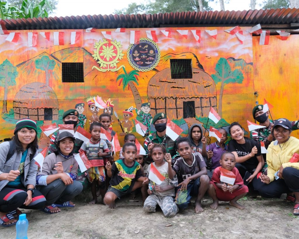 Berawal dari rumah kosong yang tidak terpakai, Satgas Yonif Para Raider 432 Kostrad memperbaiki dan menghiasi tempat tersebut sehingga nyaman digunakan anak-anak untuk tempat belajar dan bermain. Distrik Kurulu, Kab. Jayawijaya, Prov. Papua (23/02/2021)