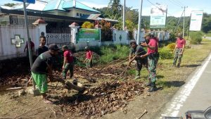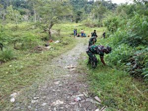 Jayapura - Prajurit TNI Satgas Pamtas Yonif 131/Brs Pos Ramil Tami melaksanakan kerja bakti di Puskesmas Distrik Muara Tami Kampung...