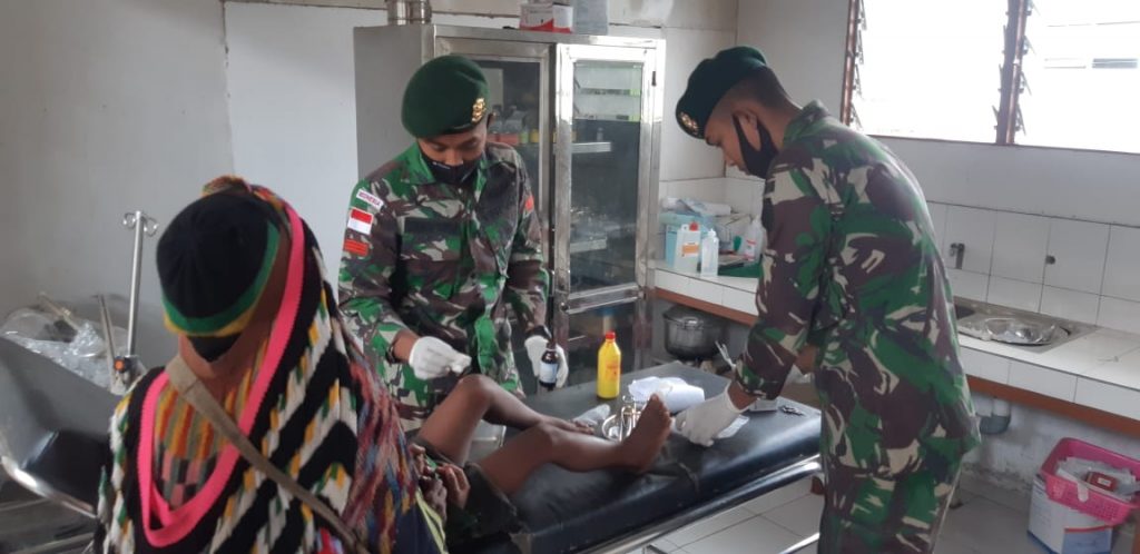 Dalam meningkatkan standar kesehatan dan kepedulian tentang pentingnya kesehatan bagi masyarakat, Satgas Yonif Para Raider 432/3/3 Kostrad selalu bekerja sama dengan petugas kesehatan Puskesmas dalam menjaga dan meningkatkan kesehatan masyarakat Distik Benawa, Kab. Yalimo, Prov. Papua (26/03/2021)