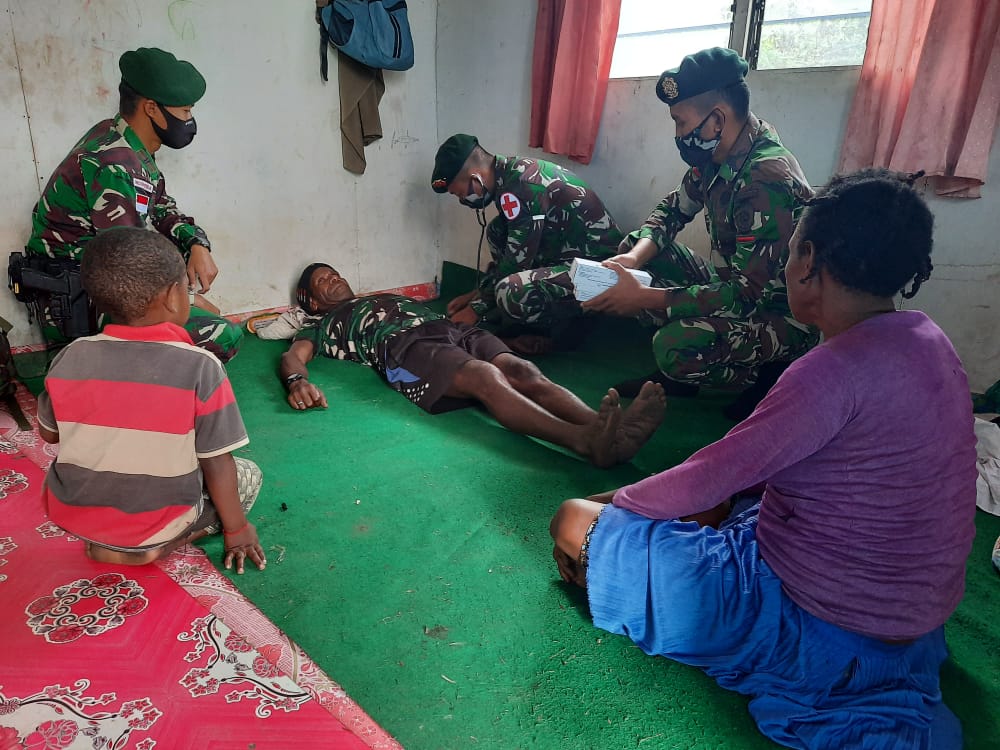 Dengan menerjunkan anggota yang mumpuni di bidang kesehatan, Danpos Ltd Inf Andike Avrian beserta 8 personilnya keliling ke rumah warga salah satunya keluarga Ibu Rena Pagawak (48) mengidap penyakit di suami dan juga anaknya. Selanjutnya tim kesehatan Pos Kobakma langsung melaksanakan pengecekan kesehatan dan memberikan obat. Pungkas Ibu Rena mengatakan bahwa bapak tentara disini sangat baik kepada masyarakat, sampai kesehatan kami pun diperhatikan. Jadi kami dan masyarakat yang lain tidak perlu datang jauh ke rumah sakit karena Pos Kobakma sangat membantu kami dalam berobat.