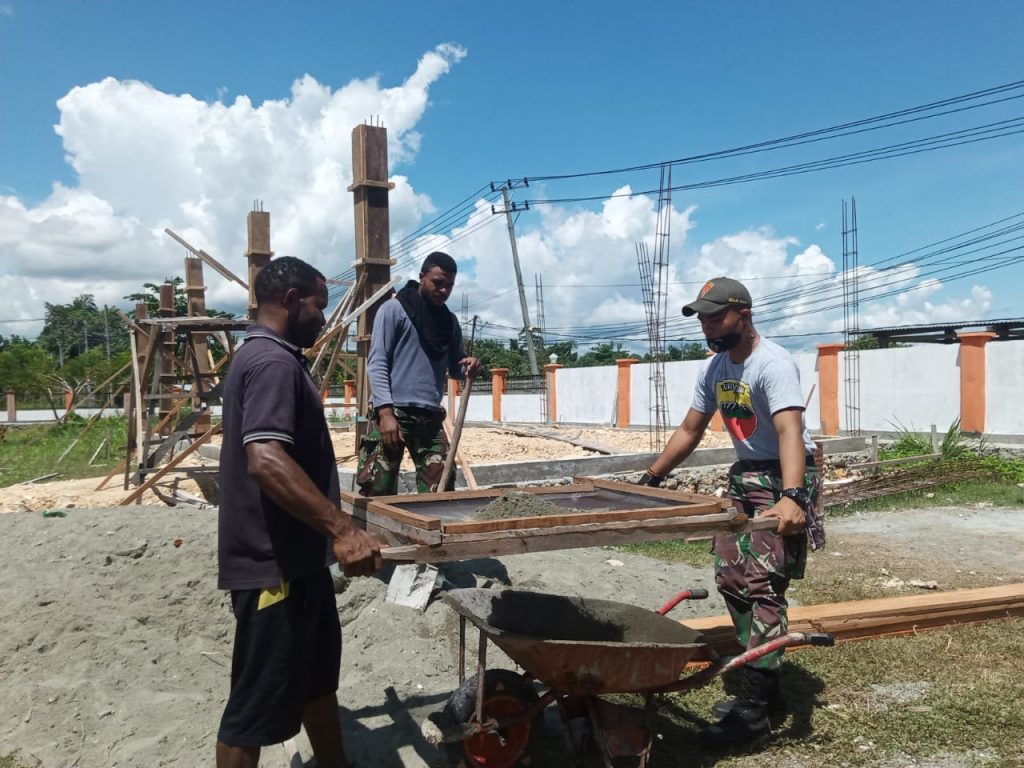 Jayapura – Dalam rangka persiapan menyambut hari Paskah Pos Kotis Skouw Satgas Pamtas RI-PNG Yonif 131/Brs melaksanakan karya bakti bersama masyarakat di Gereja jemaat Oraetlabora Holtekam.(25/03/2021)