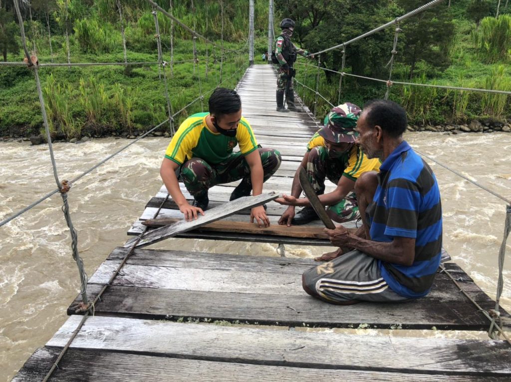 Saat pengerjaan perbaikan jembatan tersebut anggota Pos Kurima tidak bekerja sendiri, melainkan mereka saling bahu-membahu bersama masyarakat yang berdomisil di Kp. Seima dan Kp. Kurima. Dengan kerjasama yang cukup solid antara anggota TNI dengan masyarakat maka perbaikan jembatan dapat segera dirampungkan dan dengan hasil yang maksimal.