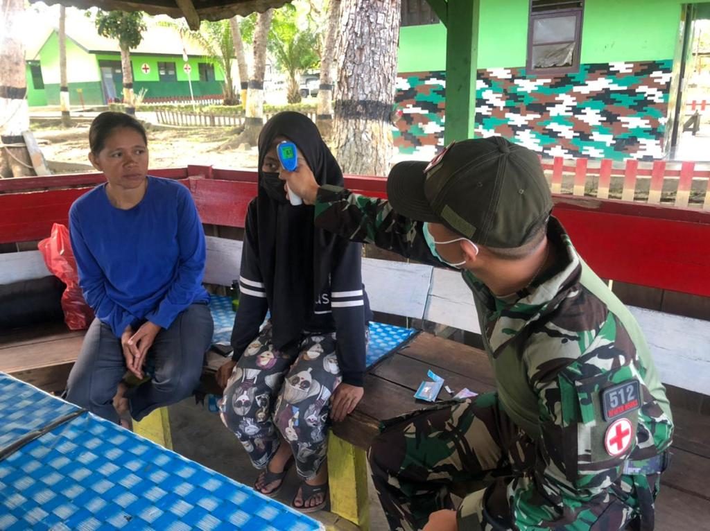 Lebih lanjut dijelaskan, Novianti yang sedang demam tinggi langsung ditangani oleh Tim kesehatan pos yakni Serka Risky dengan memeriksa suhu tubuh yang mencapai 38,3°C, setelah mendapat pemeriksaan dari pihak Kesehatan Yonif Mekanis 512/QY yang bersangkutan diberikan obat penurun demam dan langsung dikonsumsi.