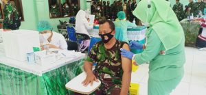Jayapura - Dandim 1701/Jayapura Letkol Inf Edwin A Candra memimpin langsung kegiatan vaksinasi bagi anggota Kodim 1701/Jayapura bertempat di Aula...